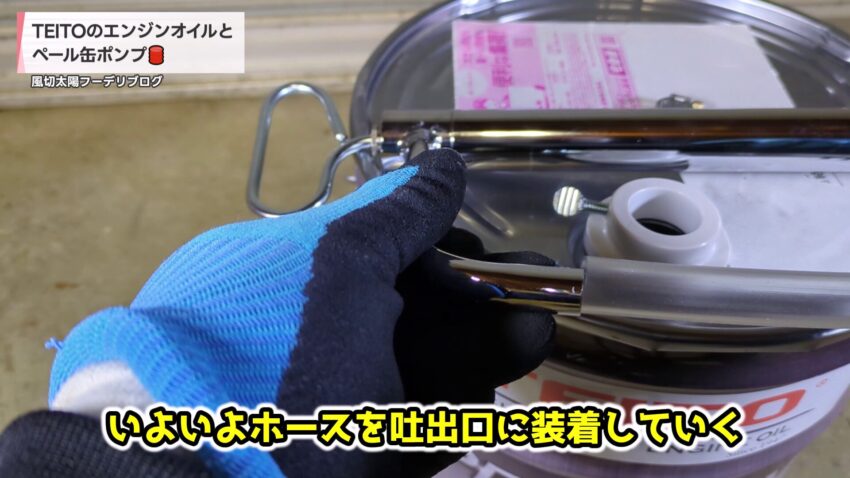 ペール缶ポンプの吐出口にホースを取り付ける
